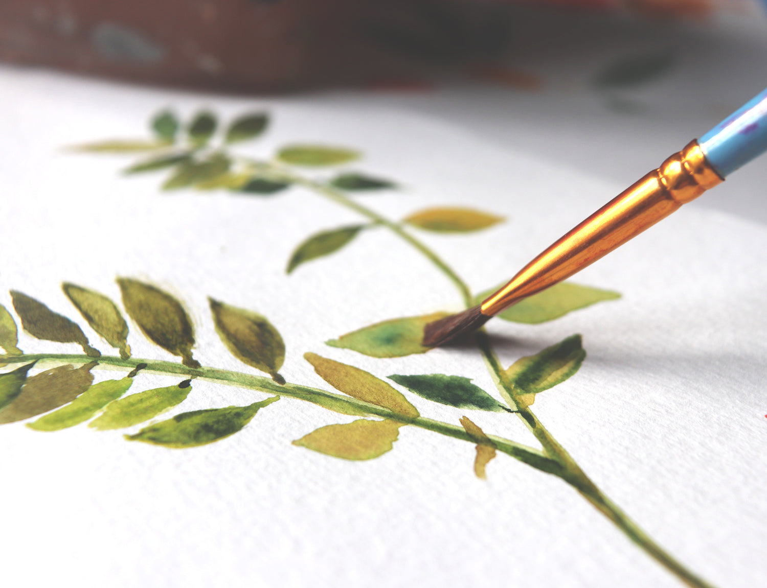 The Natalie Red Collared Dress features a custom leaf print, hand-painted by designer Alexandria. Discover how this unique print transitions into a stunning indigo-purple hue in the storyboard.